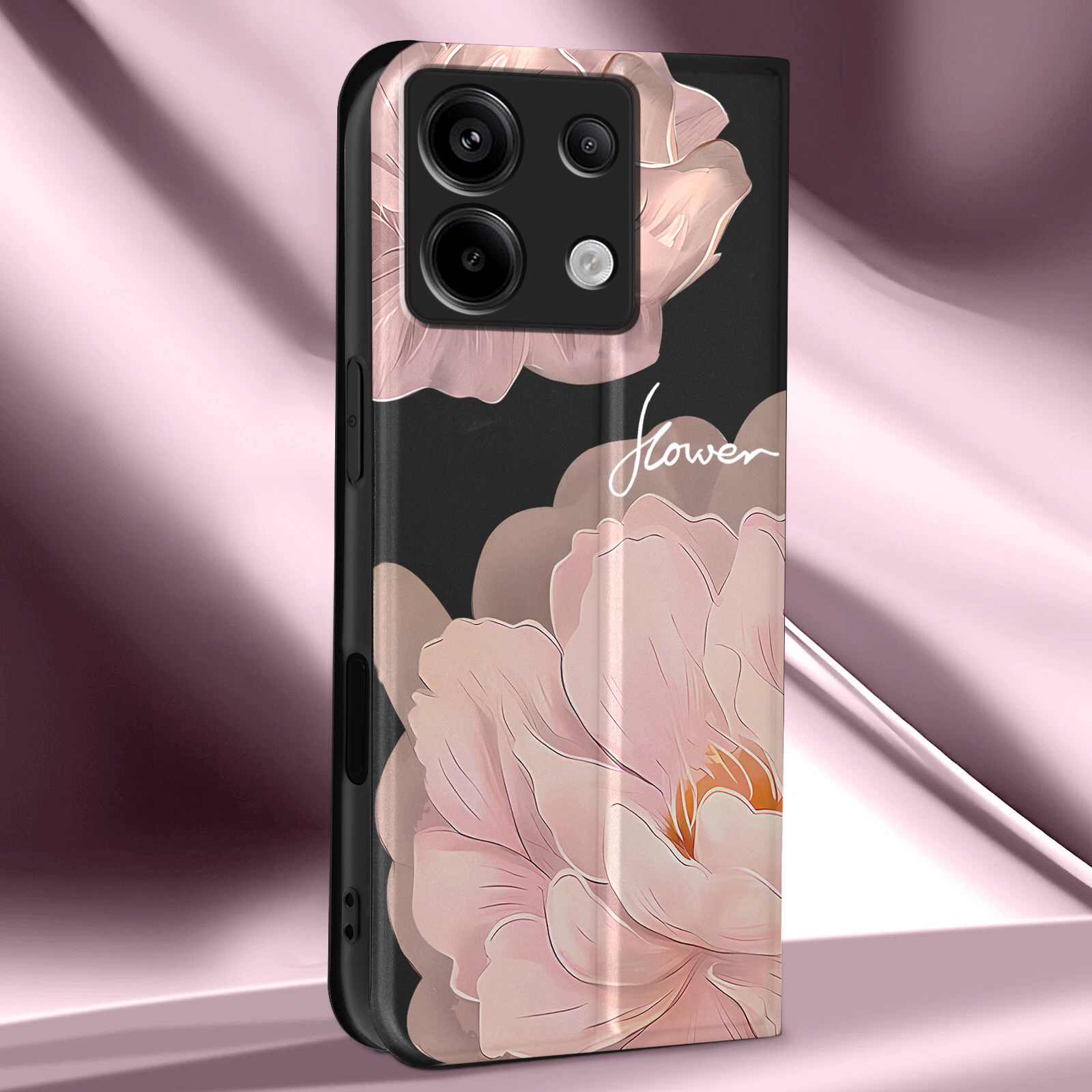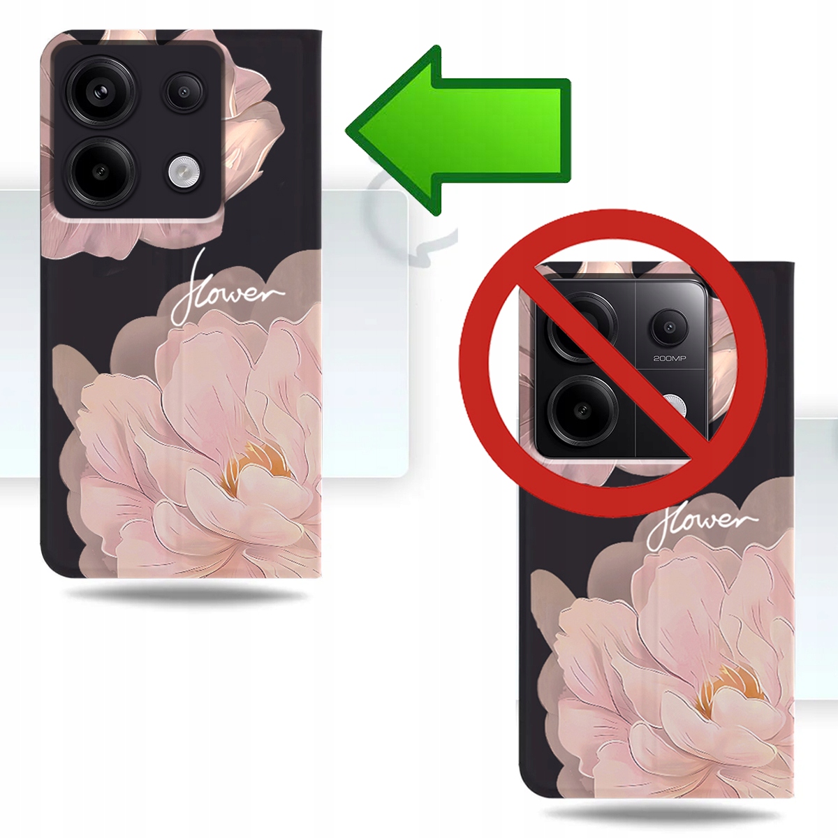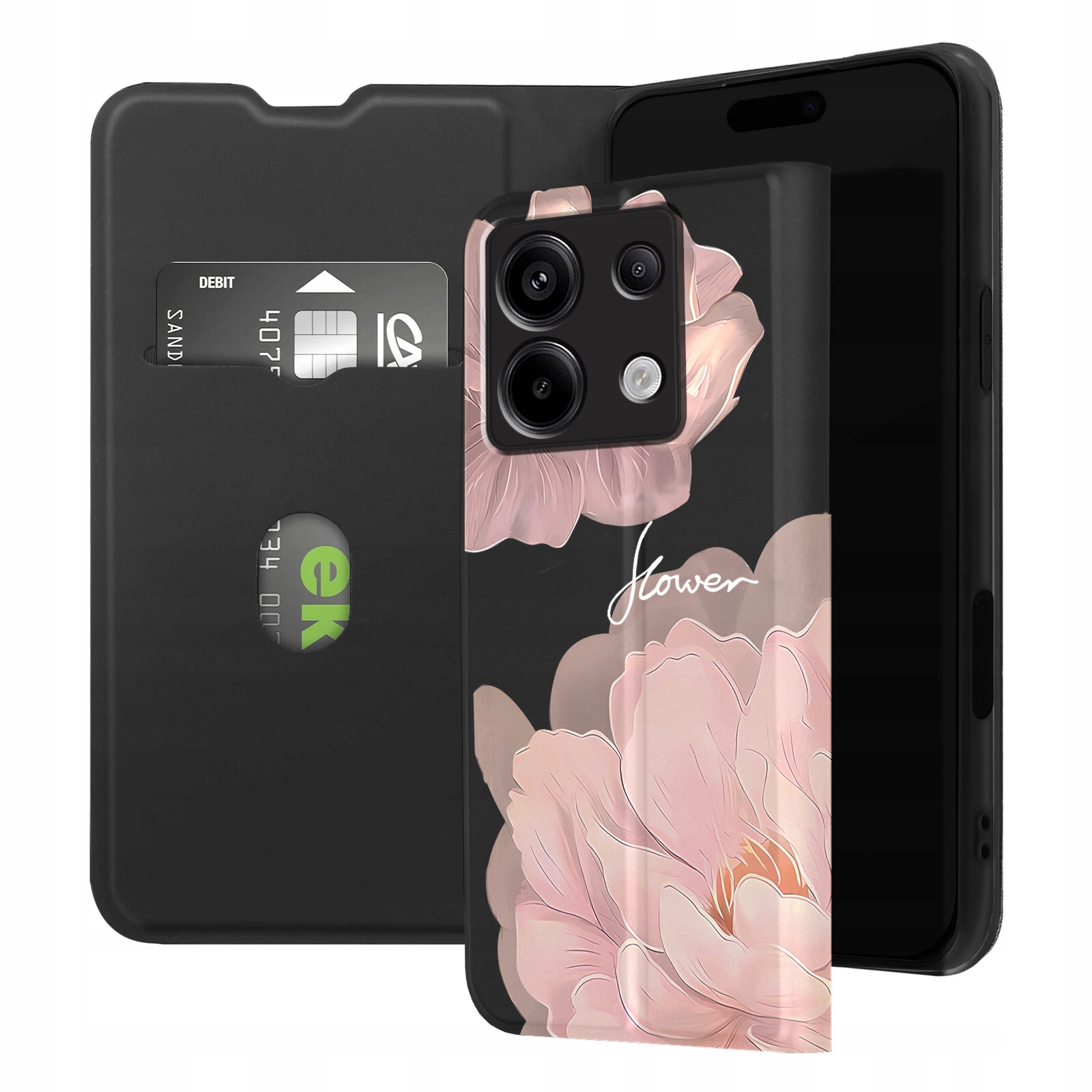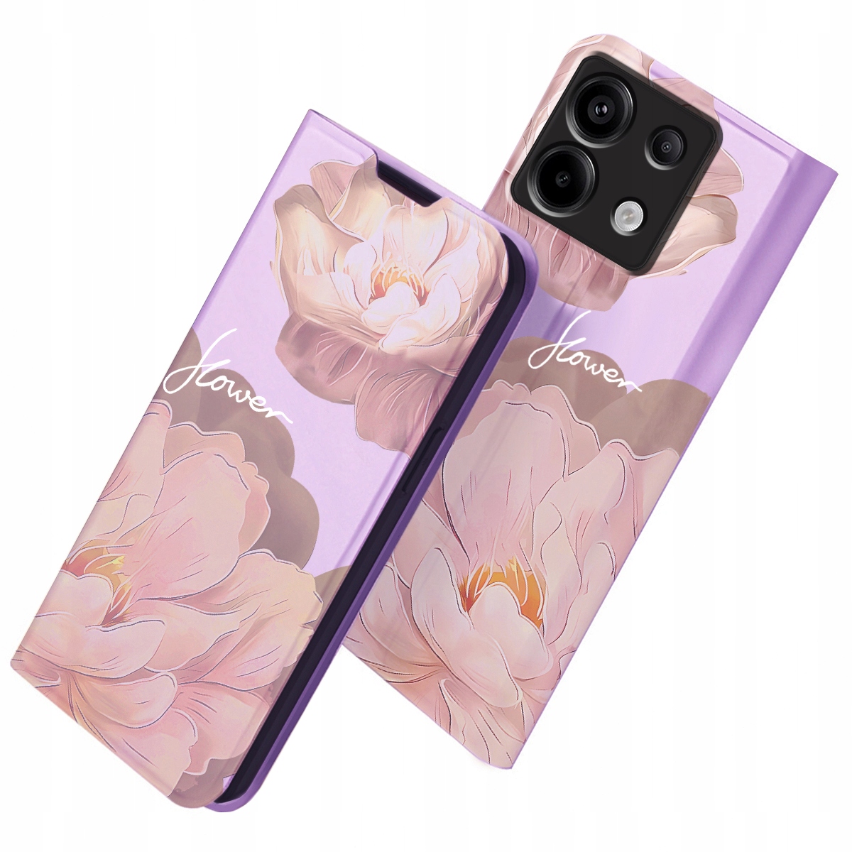 ETUI Z KLAPKĄ DO XIAOMI REDMI NOTE 13 PRO 5G PORTFEL MAGNET KWIATY + SZKŁO