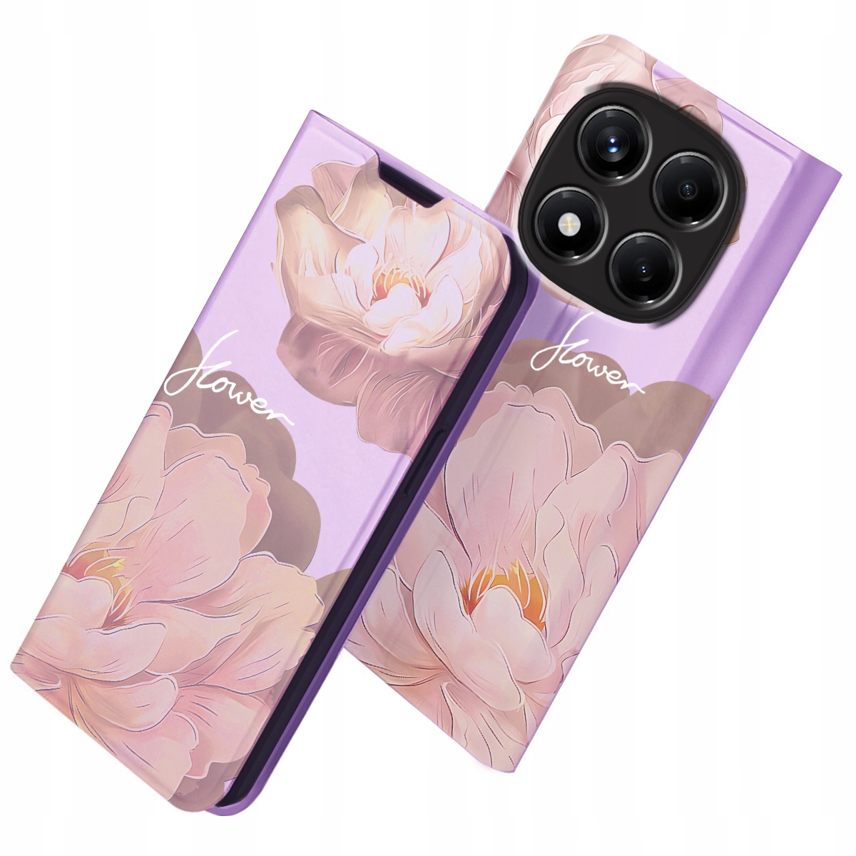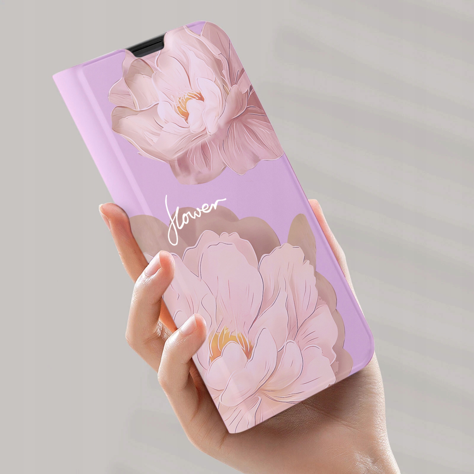Stylowe , gładkie etui książkowe z pięknym nadrukiem Stokrotek to idealne połączenie designu i funkcjonalności .