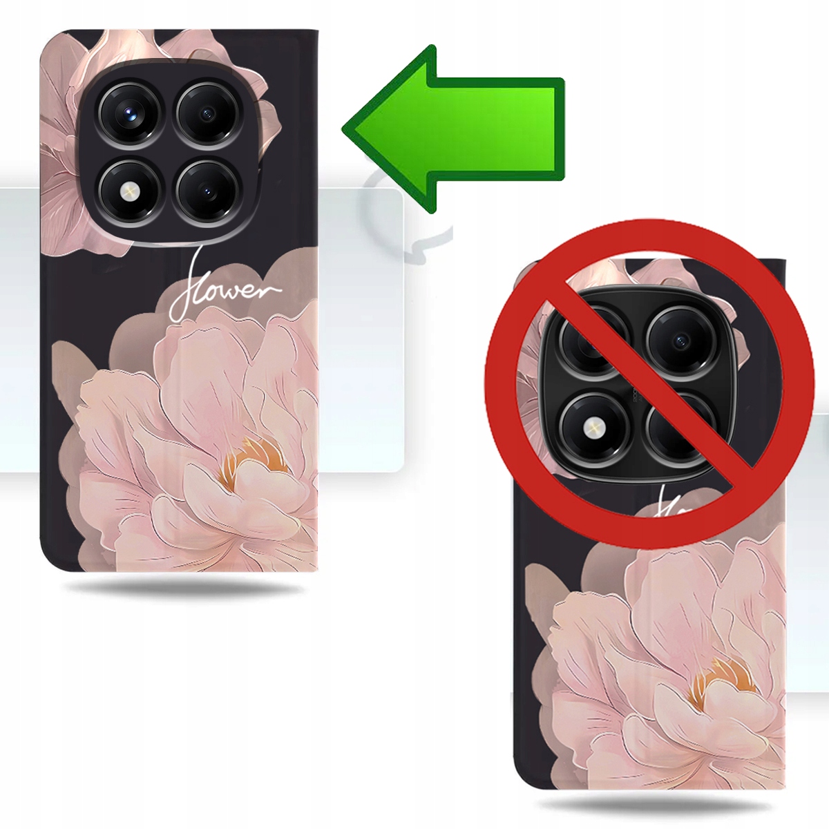 Klasyczne etui bez zabezpieczenia aparatu – obiektyw telefonu wystaje ponad powierzchnię, co zwiększa ryzyko jego uszkodzenia podczas codziennego użytkowania.