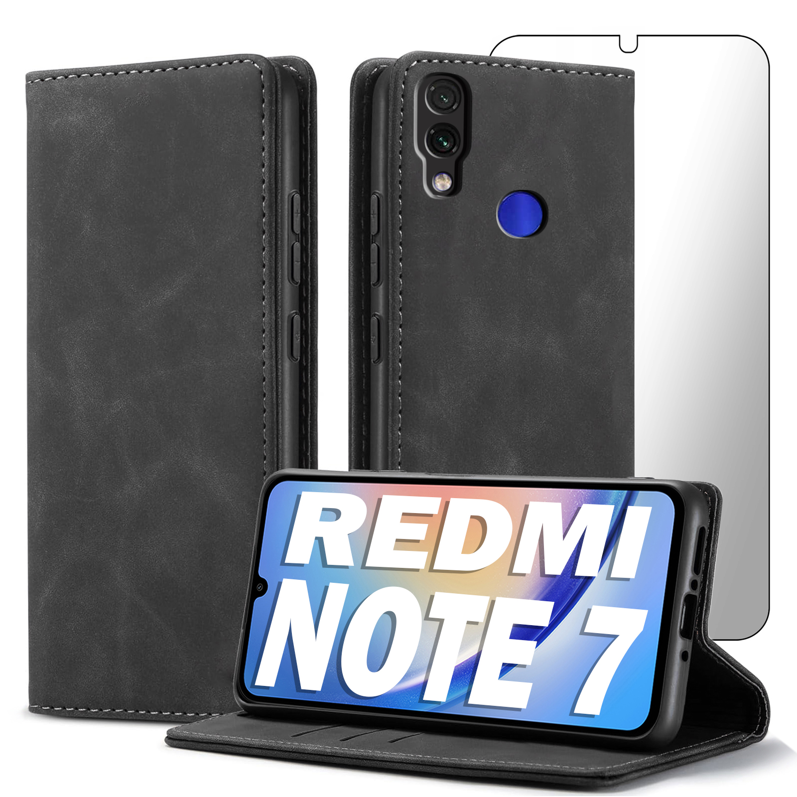 ETUI Z KLAPKĄ DO XIAOMI REDMI NOTE 7 ECOSKÓRA PORTFEL MAGNETYCZNE + SZKŁO
