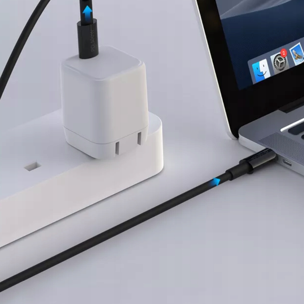 - Kabel jest zgodny z protokołem PD i nadaje się do zasilania wielu urządzeń o mocy do 100 W, w tym laptopów. Szybkie ładowanie oznacza, że w krótkim czasie daje możliwość naładowania nawet największych urządzeń mobilnych.