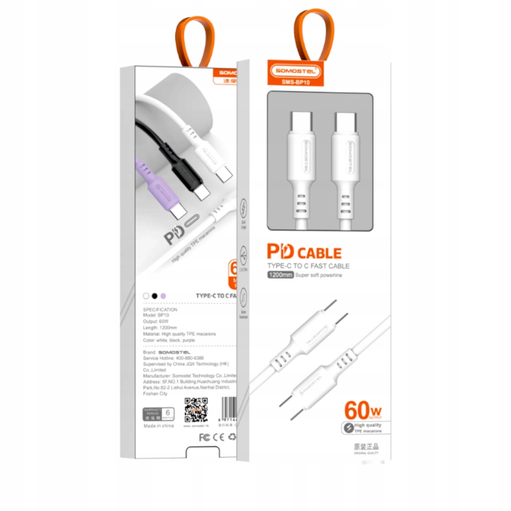 KABEL USB TYPE-C DO TYPE-C SOMOSTEL SMS-BP10 60W 1,2M MOCNY SZYBKI KABEL