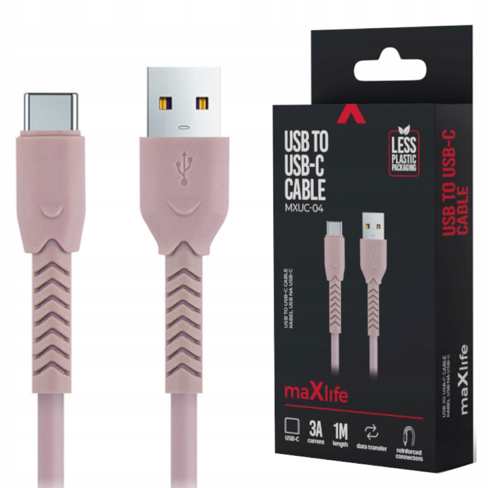 KABEL USB TYPE-C MAXLIFE MXUC-04 3A 1M SAMSUNG HUAWEI XIAOMI RÓŻOWY