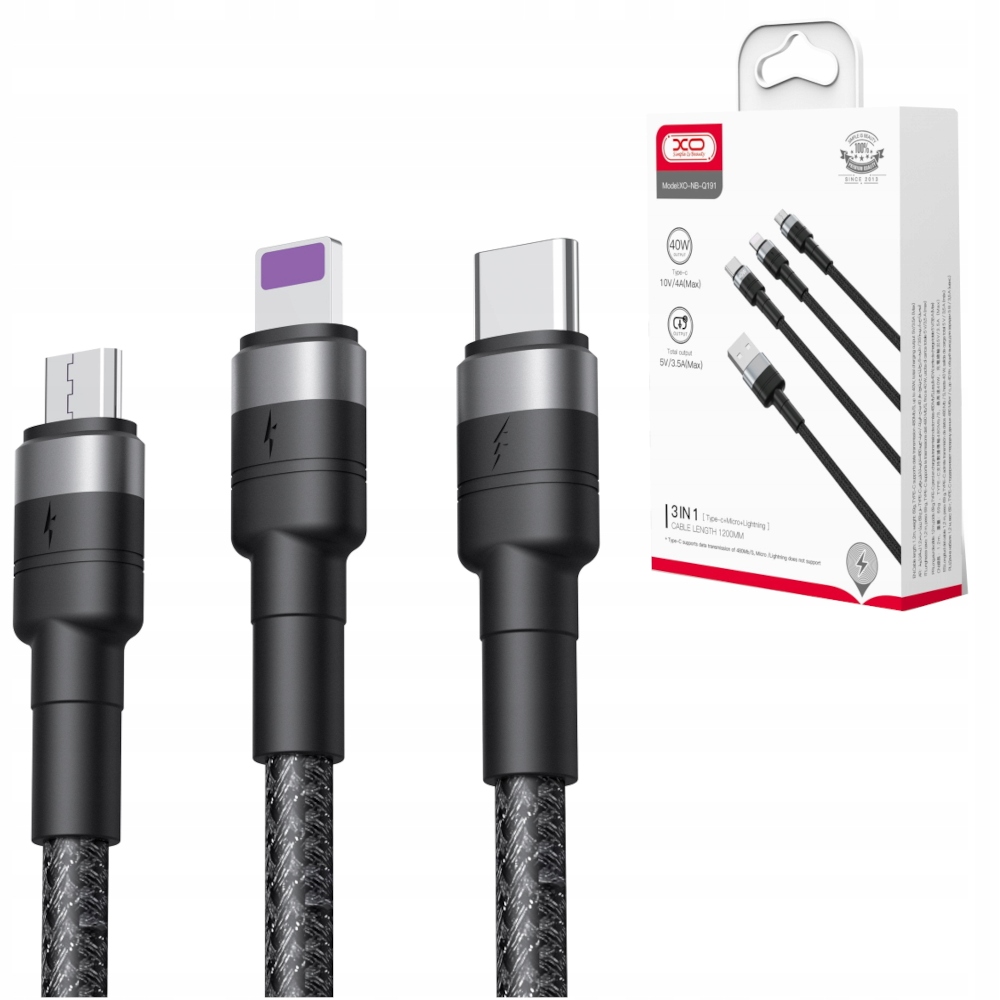 Kabel XO 3w1 LIGHTNING / Micro/ TYP-C 2,4A 1,2m