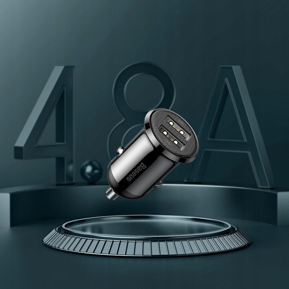 Ładowarka BASEUS to zaawansowana ładowarka samochodowa o max. prąd 4,8A wyposażona w podwójne gniazdo USB, dzięki czemu możemy ładować dwa urządzenia jednocześnie.