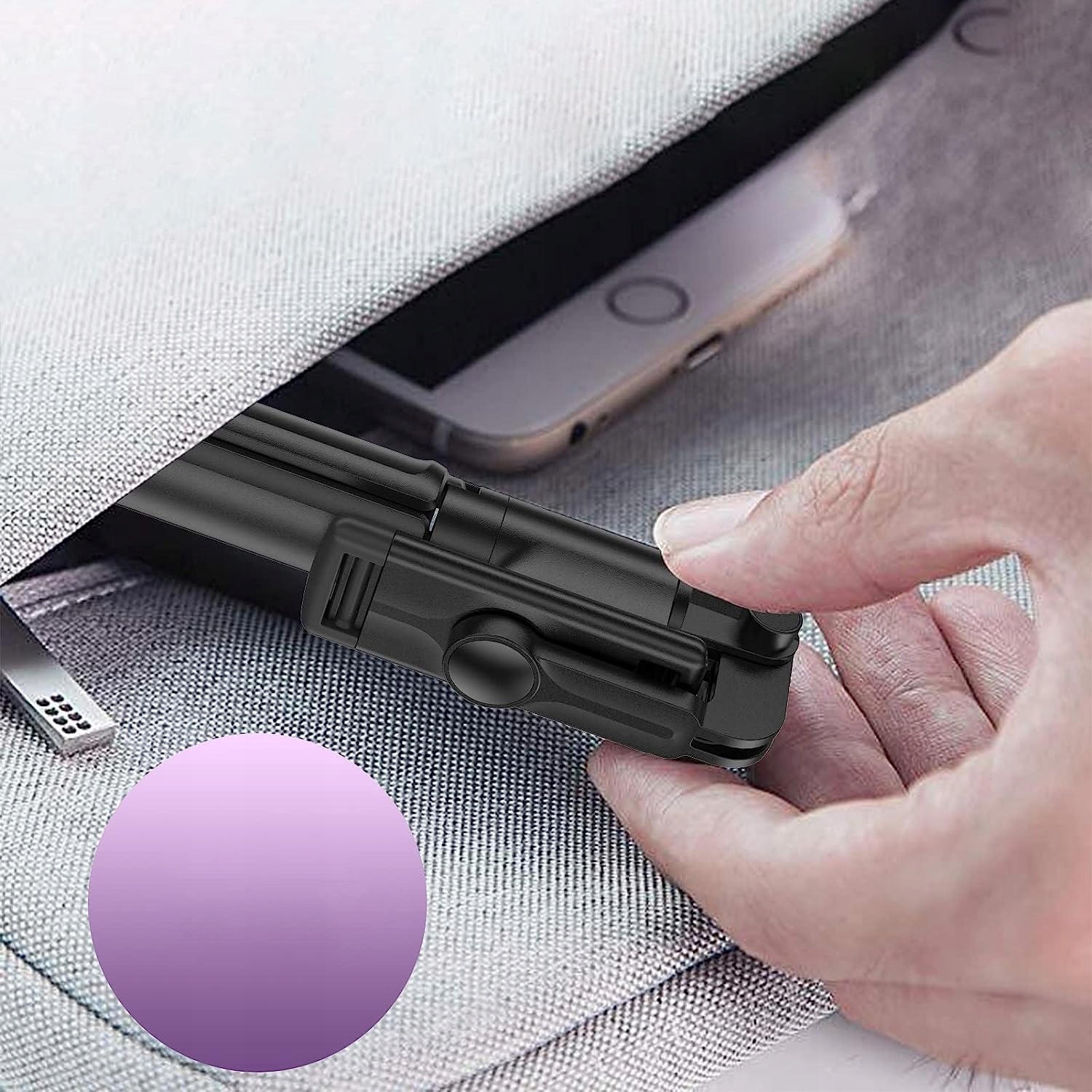 Rączka urządzenia dzieli się na trzy nogi, które po rozłożeniu tworzą wysokiej jakości statyw, wyposażony w specjalne antypoślizgowe zakończenie.