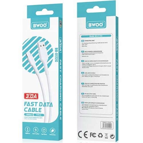SZYBKI KABEL BWOO BO-X172C USB TYPE-C 3A 1M DO SAMSUNG XIAOMI HUAWEI TRWAŁY