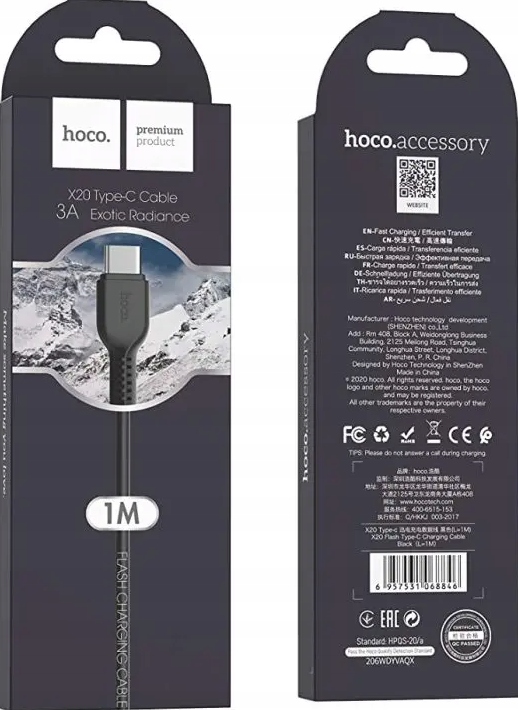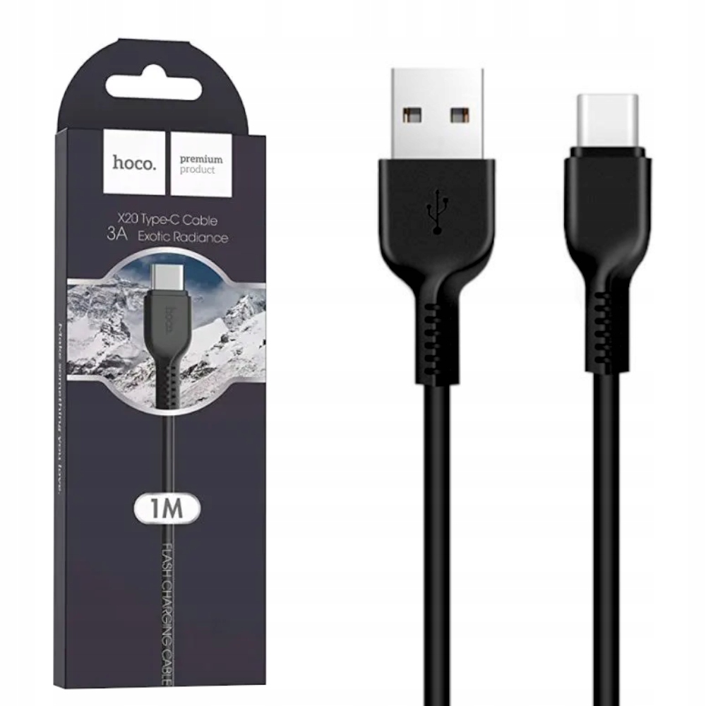 Kabel HOCO X20 to wytrzymały kabel ze złączem USB Type-C. Zakończenia wtyków zostały zaprojektowane w taki sposób, aby przetrwały długie i intensywne użytkowanie.