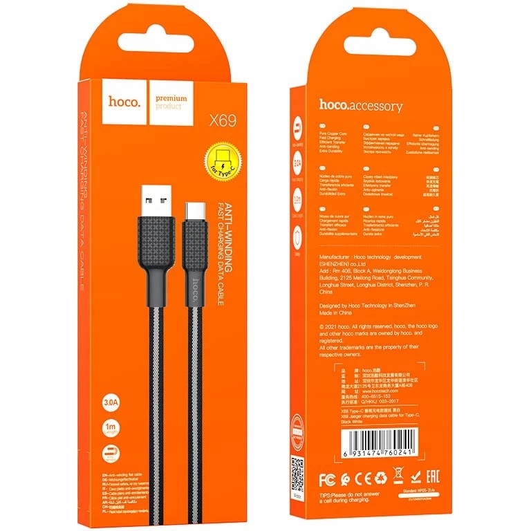 SZYBKI KABEL HOCO X69 TYPE-C 1M 3A DO SAMSUNG XIAOMI HUAWEI