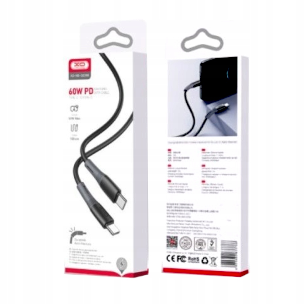 SZYBKI KABEL XO-NB-Q226B TYP-C DO TYP-C 60W 1M DO SAMSUNG XIAOMI HUAWEI
