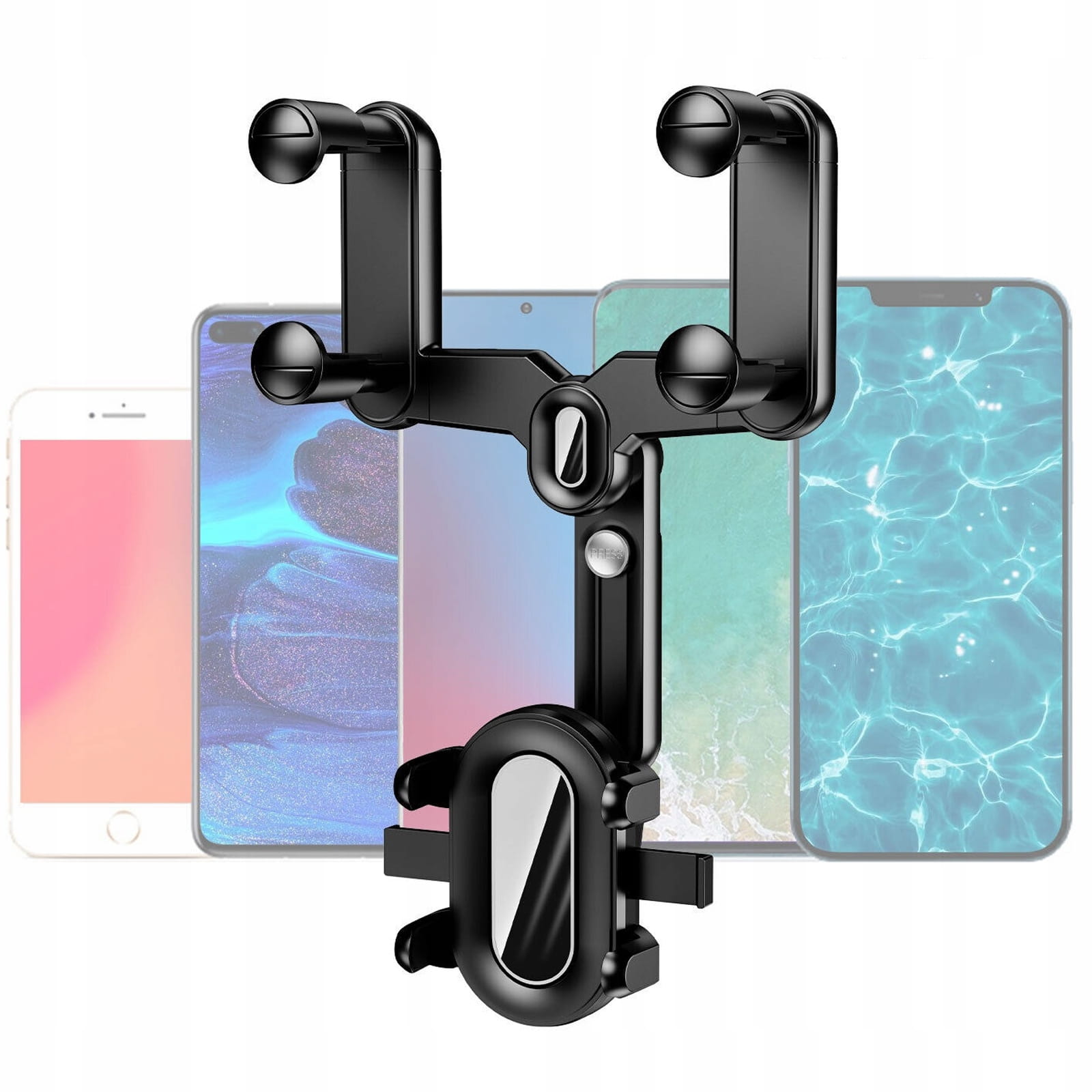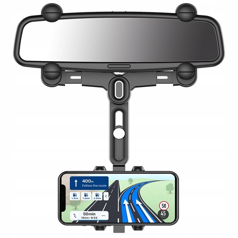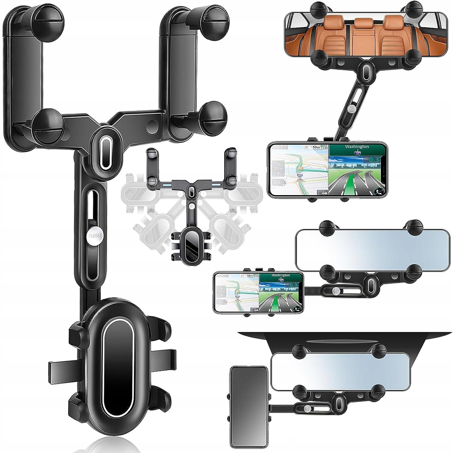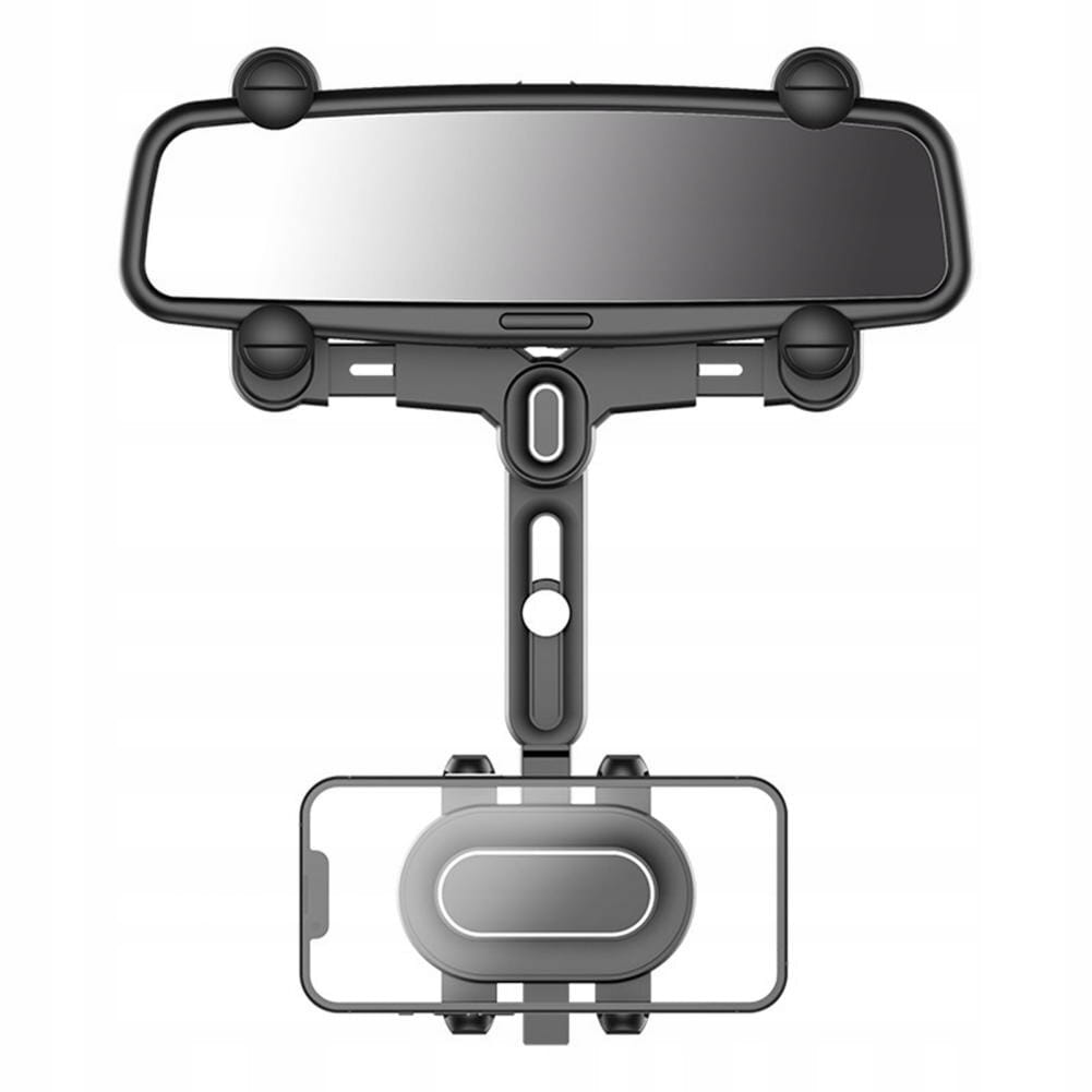 Uchwyt na telefon do lusterka samochodowego posiada teleskopowe ramię i przegub kulowy 360°, dzięki czemu można zobaczyć telefon pod każdym kątem w trybie pionowym i poziomym. Osoby siedzące na fotelu pasażera mogą się nim również cieszyć, obracając uchwyt na telefon