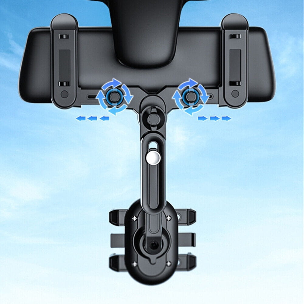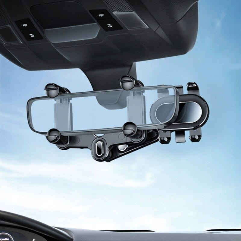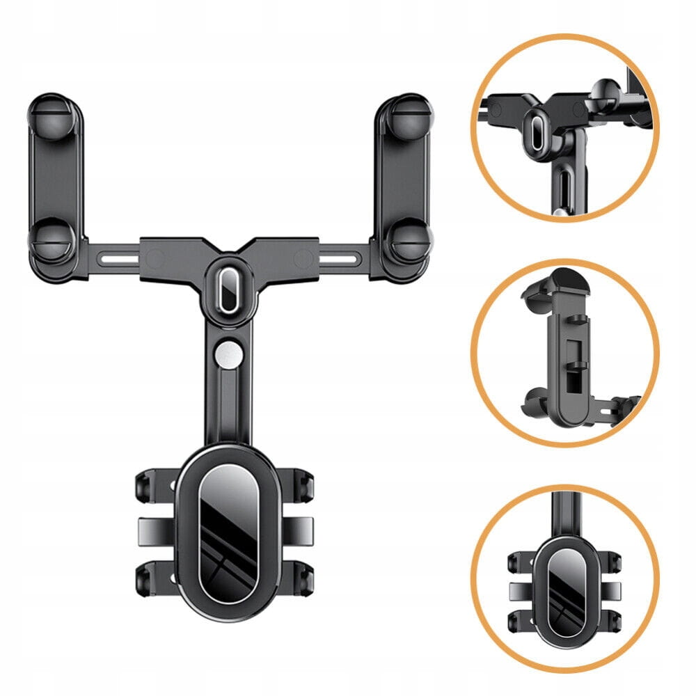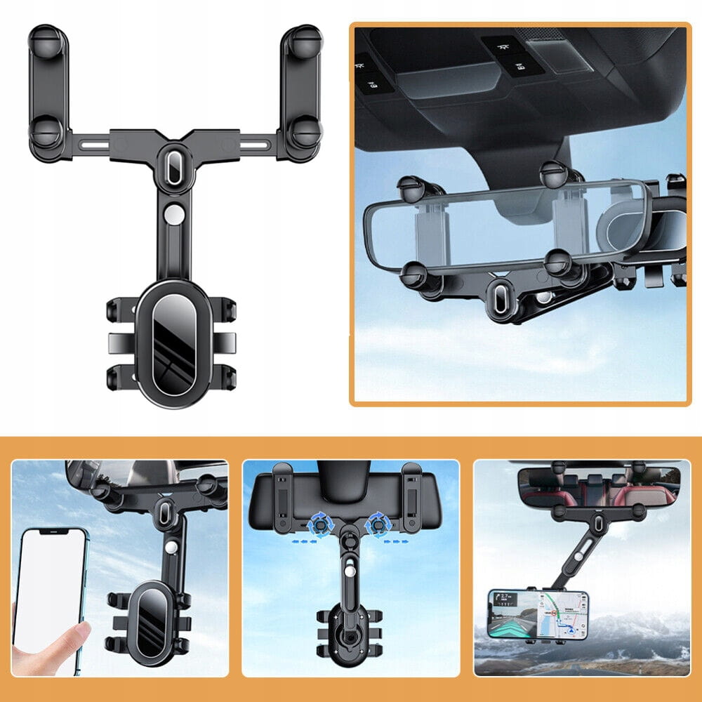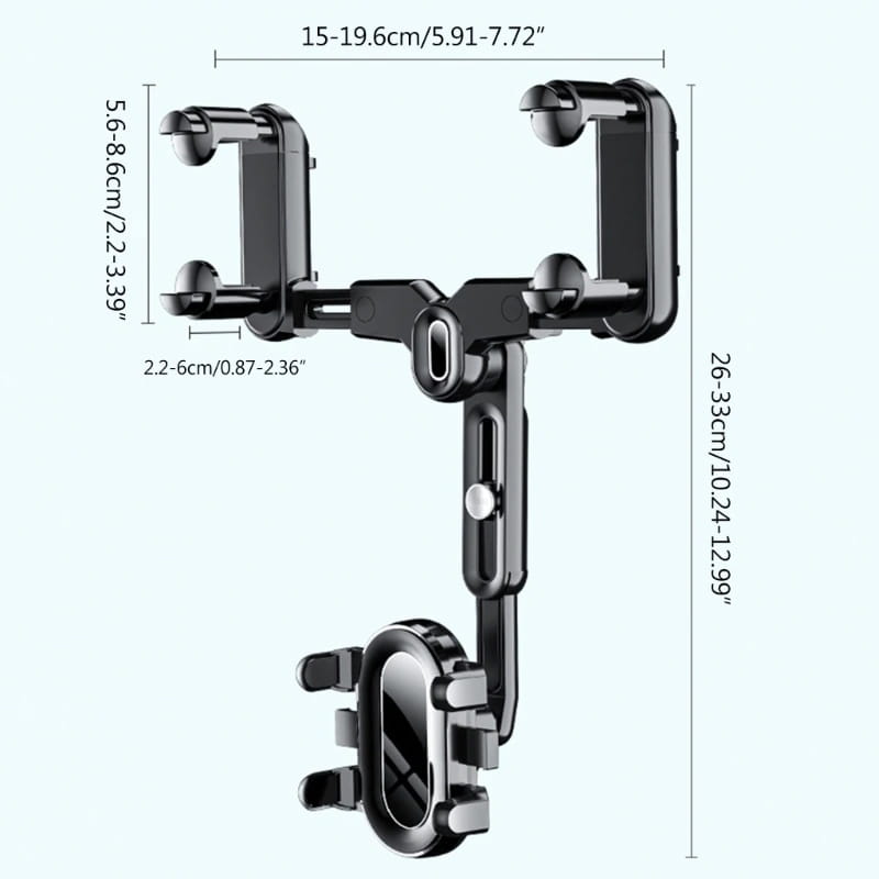 Uchwyt na telefon do lusterka samochodowego posiada teleskopowe ramię i przegub kulowy 360°, dzięki czemu można zobaczyć telefon pod każdym kątem w trybie pionowym i poziomym. Osoby siedzące na fotelu pasażera mogą się nim również cieszyć, obracając uchwyt na telefon