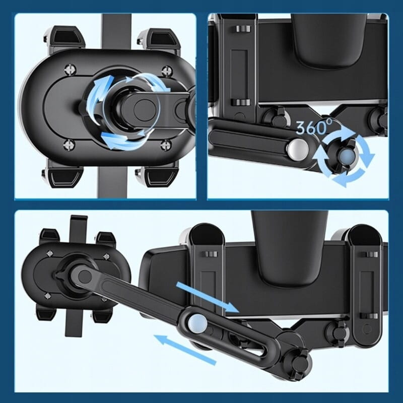 - Wielopoziomowa regulacja: kąt nachylenia, obrót uchwytu, obrót telefonu