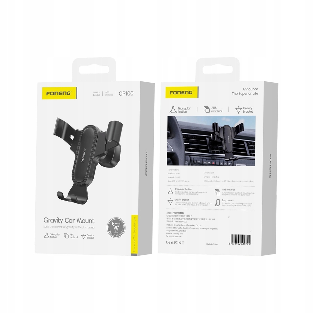 UCHWYT SAMOCHODOWY FONENG CP100 GRAWITACYJNY NA KRATKĘ DO TELEFONU