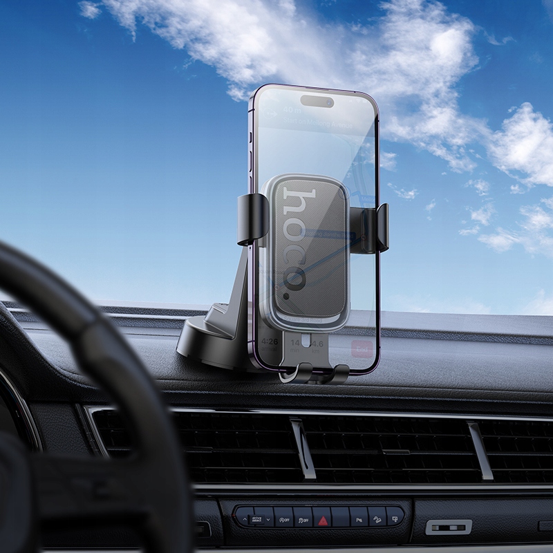 Uchwyt samochodowy HOCO to solidne rozwiązanie, które zapewnia stabilne i komfortowe umiejscowienie smartfona na desce rozdzielczej.