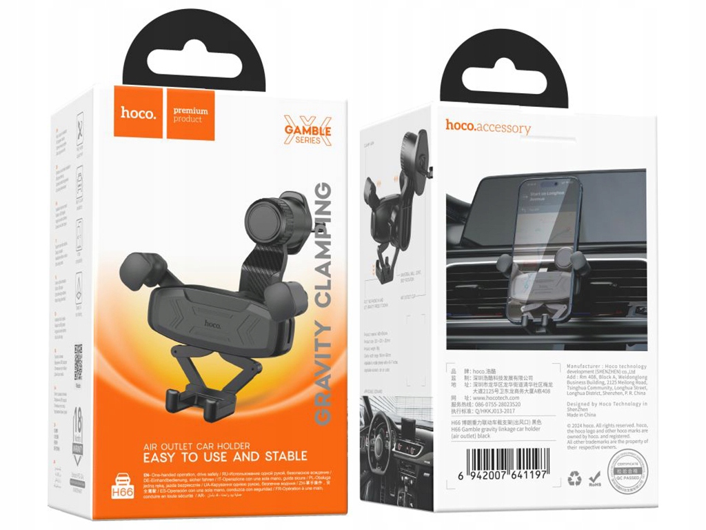UCHWYT SAMOCHODOWY HOCO GRAWITACYJNY NA KRATKĘ DO TELEFONU HOLDER MOCNY