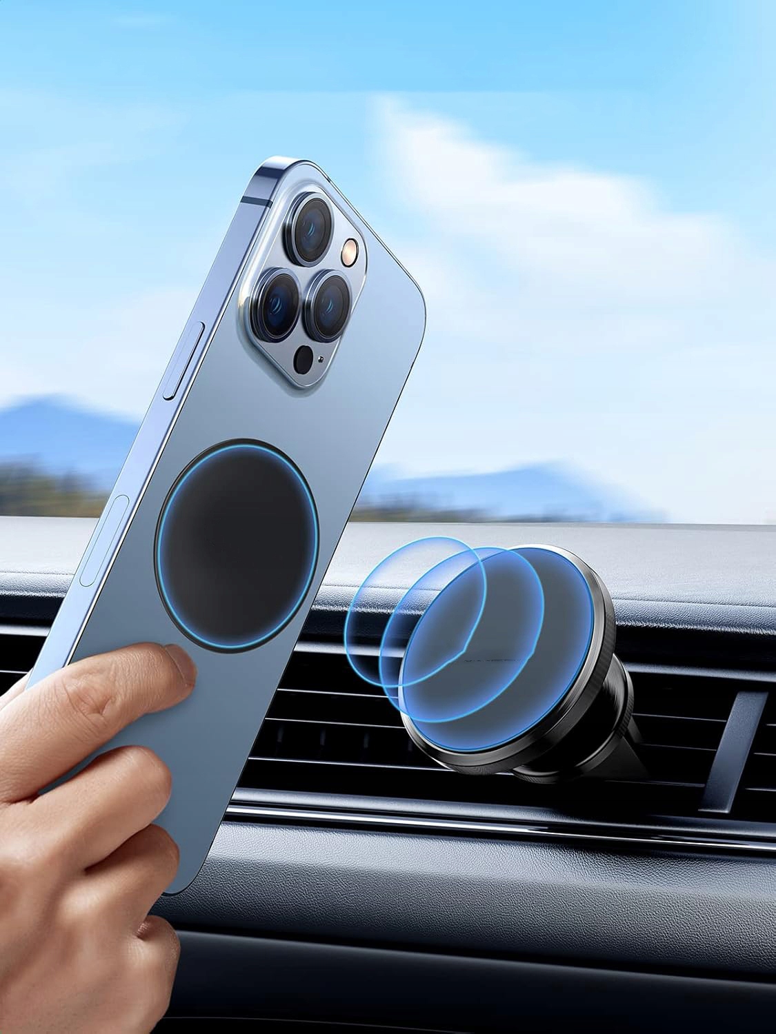 ✅Wystarczy wsunąć telefon do kratki wentylacyjnej w samochodzie i umieścić metalową płytkę pod pokrywą telefonu.